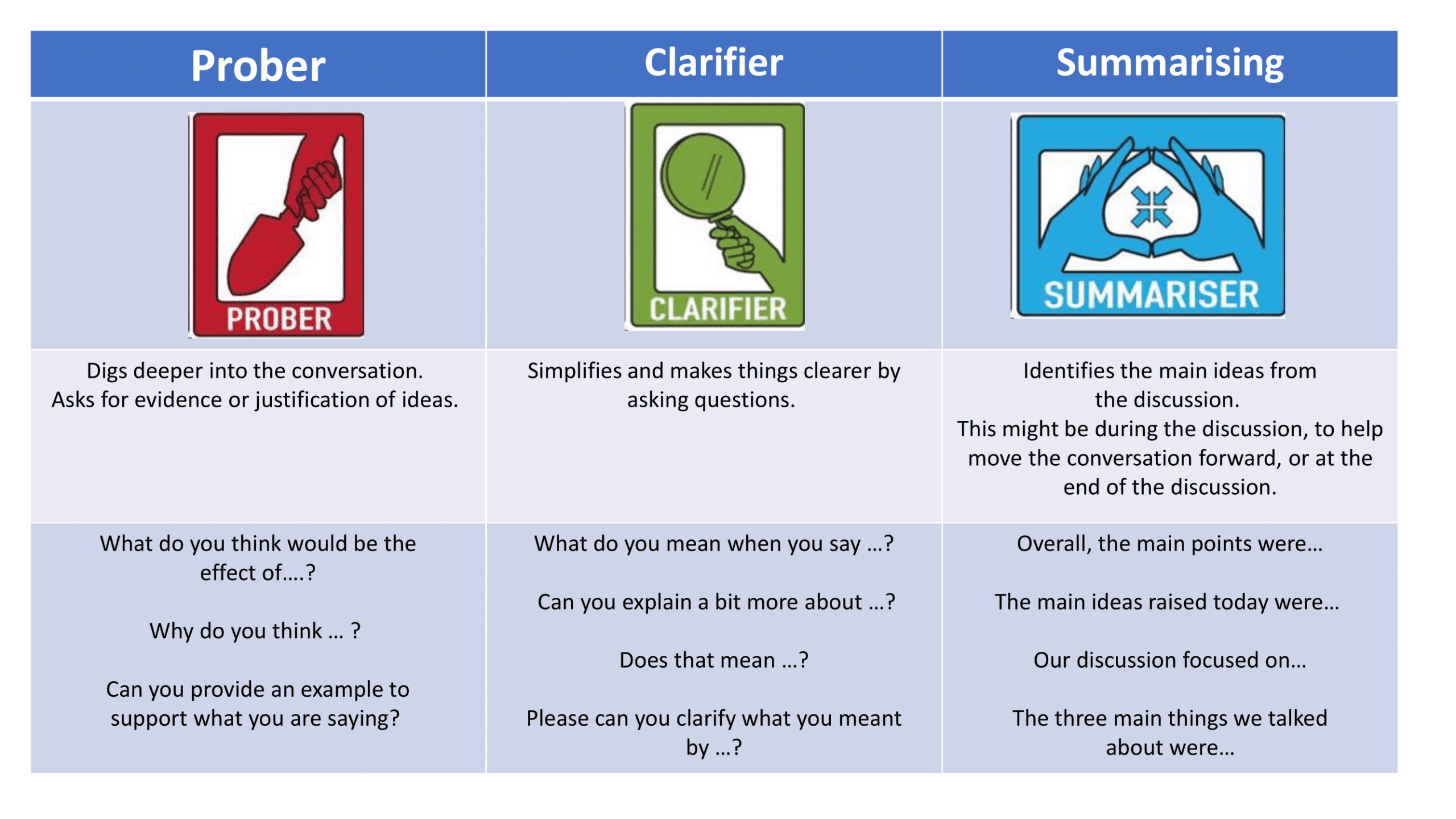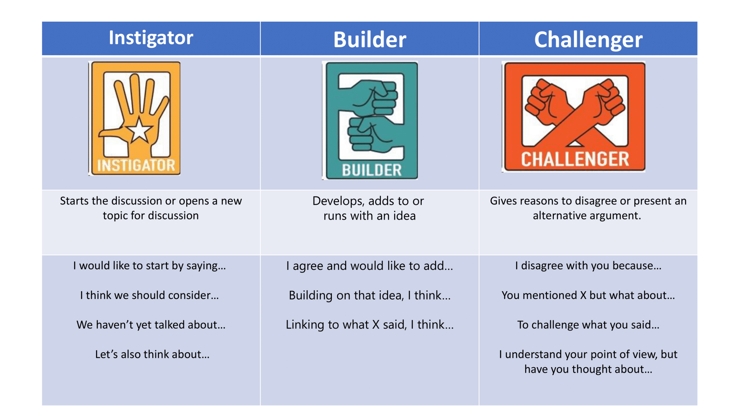 Discussion roles are used to facilitate effective discussions within the classroom.
